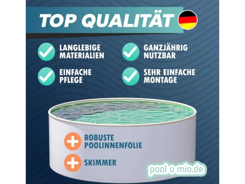 Mit dem Stahlwandpool von poolomio verwandeln Sie Ihre Terrasse oder Ihren Garten in eine persönliche Erholungsoase. Die massive Bauweise mit feuerverzinkter Stahlwand und langlebiger Poolfolie bietet Sicherheit und Komfort für die ganze Familie.