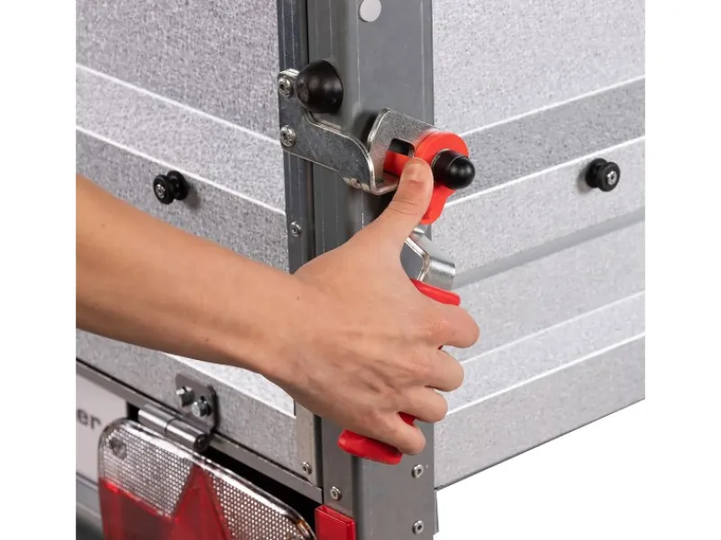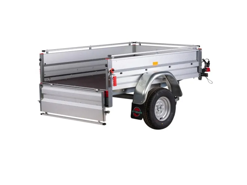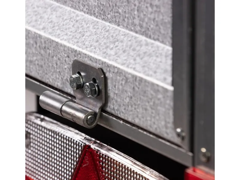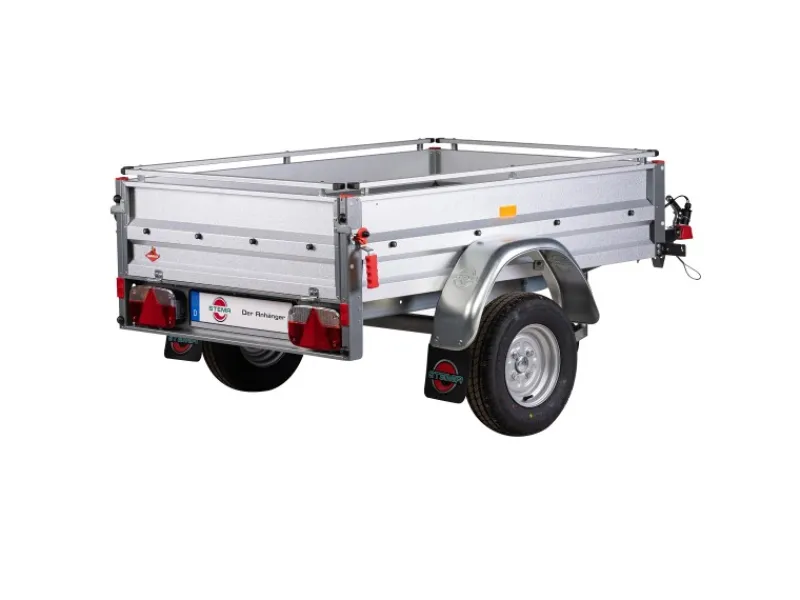 Die Bordwände sind mehrfach gesickt. Dadurch ist der Anhänger besonders robust und verwindungssteif. Den Anhänger zeichnen wartungsarme Kompaktradlager, eine Qualitätsgummifederachse, großdimensionierte Multifunktionsrückleuchten inklusive Nebelschlussleuchte und viele revisionsfreundliche Schraubverbindungen aus. Die 4 Verzurrhaken auf der Ladefläche bieten zusätzliche Verzurrpunkte.