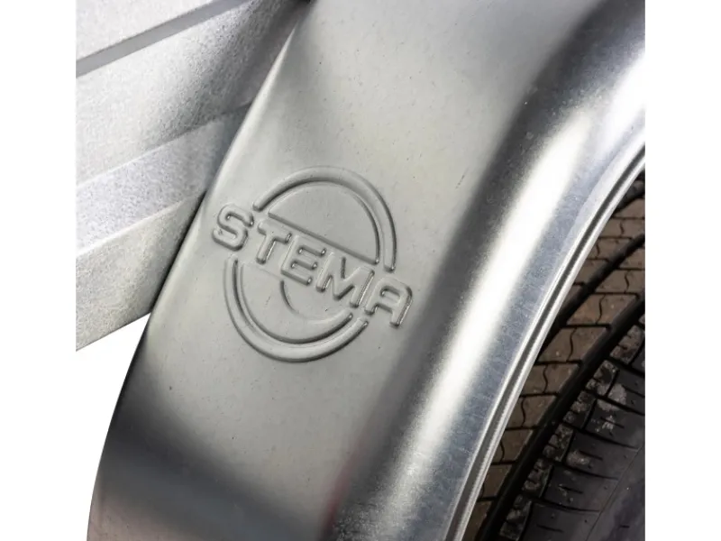 Der Anhänger wird mit Stützrad, 7-poligem Elektroanschluss, Neureifen, Stema-Sicherheitsverschlüssen mit rotem Soft-Griff an der Rückwand und nach EU-Richtlinien ausgestattet. Im Lieferumfang sind der Fahrzeugbrief, die EG-Übereinstimmungserklärung (CoC-Papier) und die Betriebsanleitung enthalten.