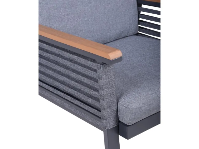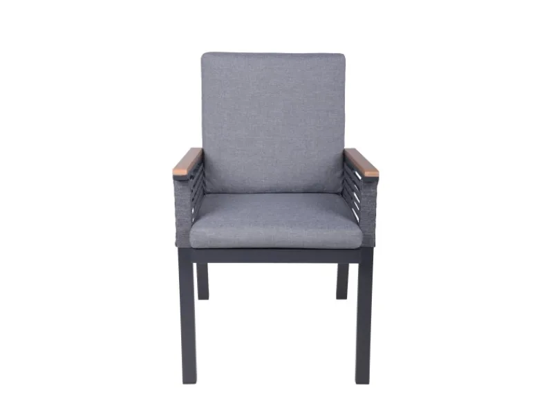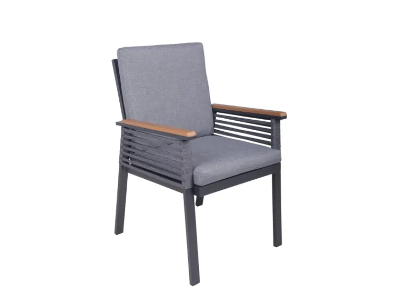 Die graue Seilbespannung sorgt für Komfort und verleiht dem Stuhl eine zeitgenössische Optik. Dieser Stuhl ist die ideale Ergänzung für Ihre Terrasse oder Ihren Garten und ermöglicht es Ihnen, entspannte Stunden im Freien zu genießen, ohne auf Stil und Qualität zu verzichten. Der Stuhl Denia wird sicherlich zum Highlight Ihres Outdoor-Bereichs.