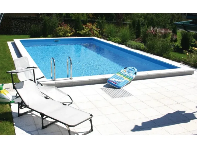 Der Styropor-Pool ist 700 cm x 350 cm groß, 150 cm hoch und fasst eine Wasserkapazität von 34.000 l. Die mitgelieferte Sandfilteranlage SF 142 hat eine Umwälzleistung von 8.000 l/h. Zudem ist im Pool-Set ein Breitmaulskimmer mit vier Einlaufdüsen enthalten, wodurch Ihr Schwimmbecken immer sauber bleibt. Die Poolfolie verfügt über eine Spezial-Einhängebiese und eine Profilleiste aus Alu, die optimal für Beckenrandsteine (separat erhältlich) geeignet ist. Das Set beinhaltet außerdem ein Schutzvlies für Wand und Boden, Wanddurchführungen und einen Bodenablauf. Die Edelstahlleiter bietet einen komfortablen Ein- und Ausstieg.