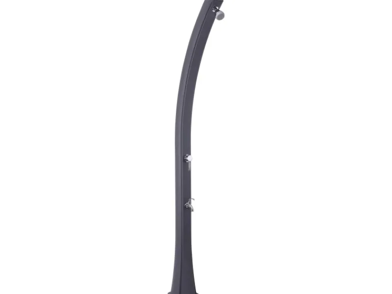 Die über 2 Meter hohe Dusche mit 25 Liter Fassungsvermögen besticht durch ein edles Design und wird so zum Blickfang in Ihrem Garten. Um maximale Energieabsorption und eine schnellstmögliche Erwärmung des Wassers zu ermöglichen wurde die Dusche komplett in einem edlen Schwarz gehalten. Bei optimaler Sonneneinstrahlung haben Sie in weniger als 1 Stunde angenehm warmes Wasser. Diese Solardusche zeichnet sich durch ein edles Design aus und ist eine Bereicherung für Ihren Garten oder Ihren Pool – und das ganz ohne Strom!