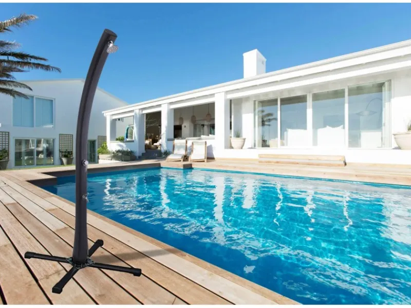 Genießen Sie die Freiheit, Ihre Gartendusche nach Belieben zu platzieren, ohne sich langfristig auf eine Bodenmontage festlegen zu müssen. Der Standfuß bietet nicht nur Stabilität, sondern auch die Flexibilität, Ihre Gartendusche optimal in Szene zu setzen.