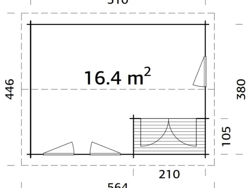Sockelmaß Haus ohne Außenfläche B x T: 510 x 380 cm