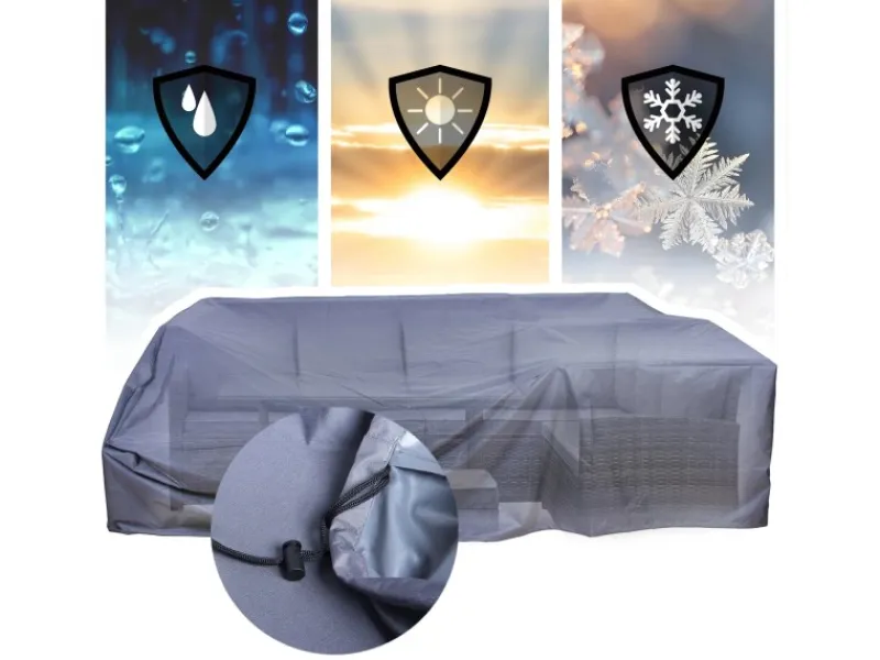 Die Möbelabdeckung schützt Ihr Möbelset vor Sonne, Regen, Staub und Wind, Hitze, Kälte und Frost.