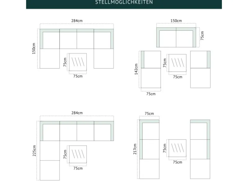 2 x Eckelement inkl. Kissen: ca. 75 x 75 x 64 cm (BxTxH)