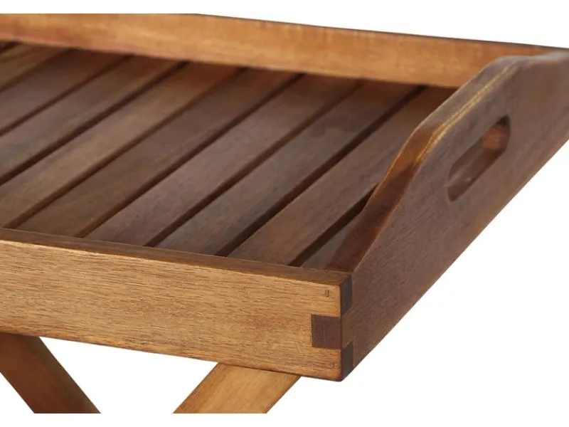 Der Siena Garden Tablettisch Astoria bringt einen natürlich-eleganten Look in Ihren Garten. Das mobile Tablett mit einem abnehmbaren Untergestell, welches gleichzeitig eine wunderschöne Akazienholz-Applikation für Ihren Garten bietet, erweitert Ihren Platz für leckere Mahlzeiten im positivsten Sinne.