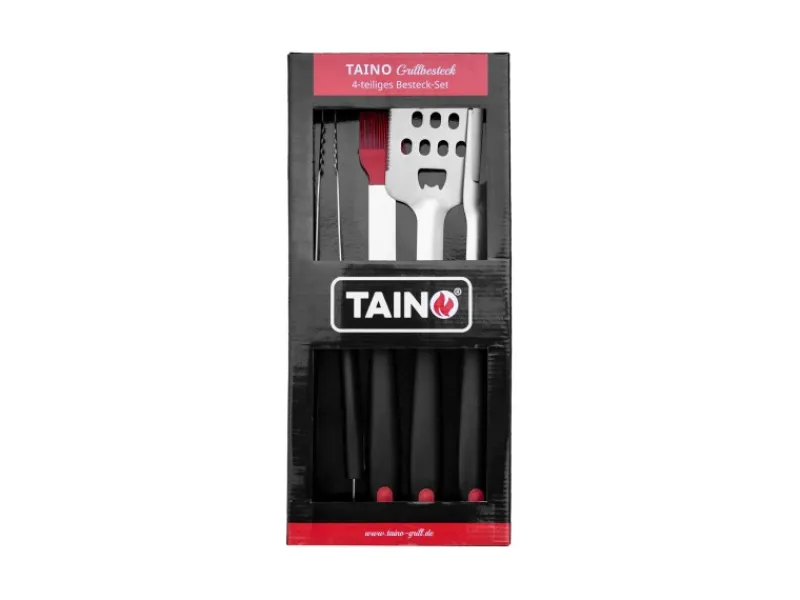 Ideales 4-teiliges Besteck Zubehör von TAINO zum Grillen und Smoken. Das Set beinhaltet: