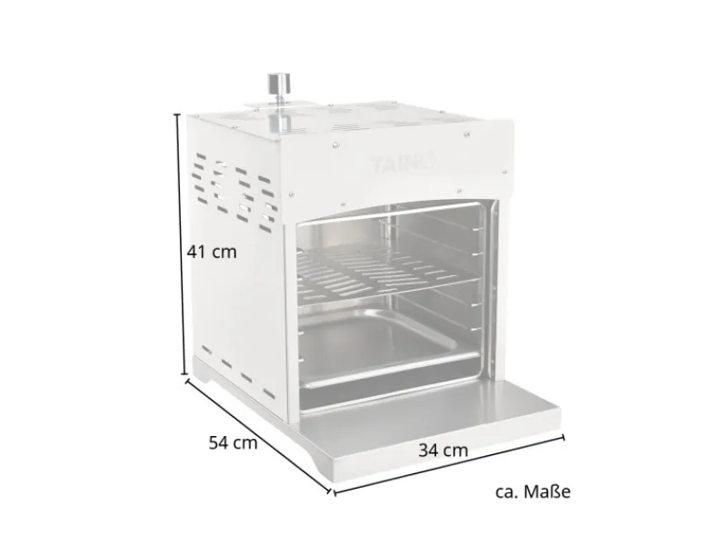 Der TAINO XXL Beef-Grill wird mit Gas betrieben (50mbar) und ermöglicht Ihnen nicht nur das Zubereiten von köstlichen Fleischgerichten wie Steaks, sondern auch Gebäck und knusprige Pizza.