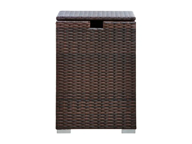 Design: Dunkelbraunes Rattan-Geflecht mit Gasflaschenhalterungsring Klappdeckel und Belüftung