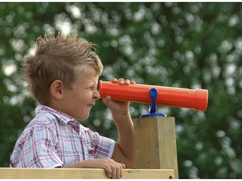 Das aus Kunststoff bestehende rote Teleskop hat einen Durchmesser von 6cm und ist ca. 30cm lang. Die perfekte Erweiterung für Ihr Kinderspielgerät. Für Kinder ab 3 Jahren geeignet.