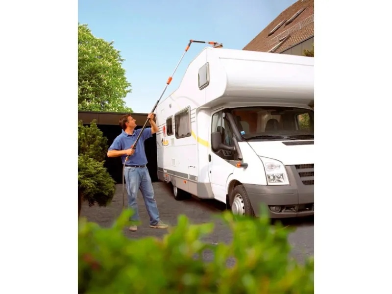 Im Wasserstiel integriert ist das praktische und bruchsichere Beimischgerät, in das bei Bedarf die Gardena Pflegemittel (Art.-Nr. 940746, 940744, 940745) eingelegt werden können. So können Sie wahlweise mit Klarwasser und/oder unter Beigabe von Pflege- oder Reinigungsmitteln arbeiten.