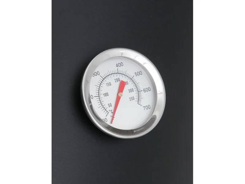Der Smoker Wichita ist ein echter Eyecatcher und beschert ganz neue Grillerlebnisse. Der kleine Smoker im Western Style verbindet verschiedene Grillmöglichkeiten. So kann zum einen das Grillgut traditionell auf der vorgesehenen Grillfläche direkt über der Glut zubereitet werden. Zum anderen kann das Fleisch auch in der Abluft eines Holzfeuers gegart werden. Dies ist möglich durch die spezielle Bauform des Smokers. In dem kleineren und etwas tieferen Feuerraum entsteht Rauch beim Verbrennen von Holz. Dieser Rauch steigt auf und gelangt in den größeren Garraum, in welchem sich das Grillgut befindet. Der Weg des Rauches wird durch den Kaminabzug in dem Garraum unterstützt. Das Grillgut wird somit bei niedriger Temperatur von +80 °C bis +130 °C schonend gegart und erhält seinen charakteristischen Rauchgeschmack. Oft wird dies auch als Räuchern bezeichnet. Mithilfe des integrierten Thermometers im Deckel kann die Temperatur im Garraum bequem beobachtet werden. Durch das Zubereiten im Rauch wird das Grillgut gleichmäßig von allen Seiten gegart und behält seine saftige Konsistenz. Über die Wahl des Holzes lassen sich neue und unbekannte Geschmacksrichtungen ausprobieren. Die geschmacksverleihende Intensität des Rauches kann durch die Belüftungsklappen geregelt werden. Um im Smoker tolle Ergebnisse zu erzielen, muss man kein Profi sein. Durch die geringe Gartemperatur kann das Grillgut nicht verbrennen und muss fast gar nicht gewendet werden. Der Wichita bietet darüber hinaus eine gesunde Art zu Grillen, denn durch die Zubereitung im Rauch können weder Fett noch Flüssigkeiten in die Flamme tropfen und gesundheitsschädliche Stoffe verursachen.