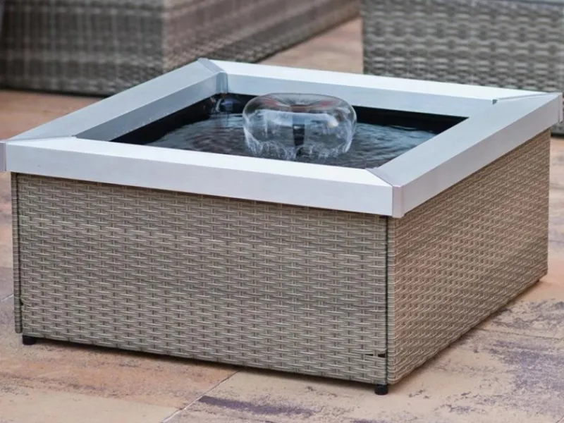 Holen Sie sich den Gartenteich mit dem Ubbink Terrassenteich Acqua Arte Amora auf die Terrasse. Moderner Es handelt sich um einen Terrassenteich mit grau-beigefarbener Umrandung aus Kunststoffgeflecht und mit dekorativem umlaufendem Rand aus Aluminium. Innen wird der Teich mit Teichfolie ausgekleidet. Die einfach zu montierenden Teile sind flach und somit leicht zu transportieren sowie platzsparend lagerbar. Die passende Teichpumpe mit Düsenaufsatz wird mitgeliefert.