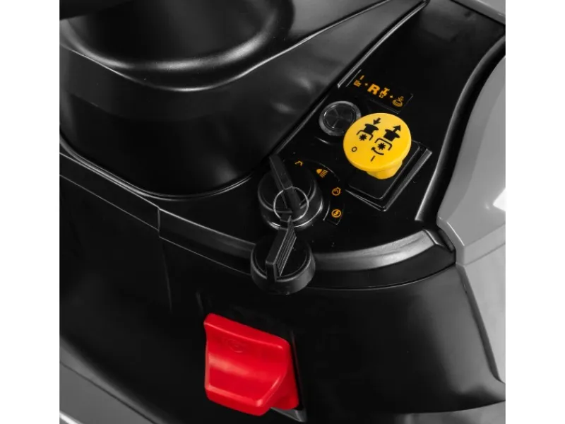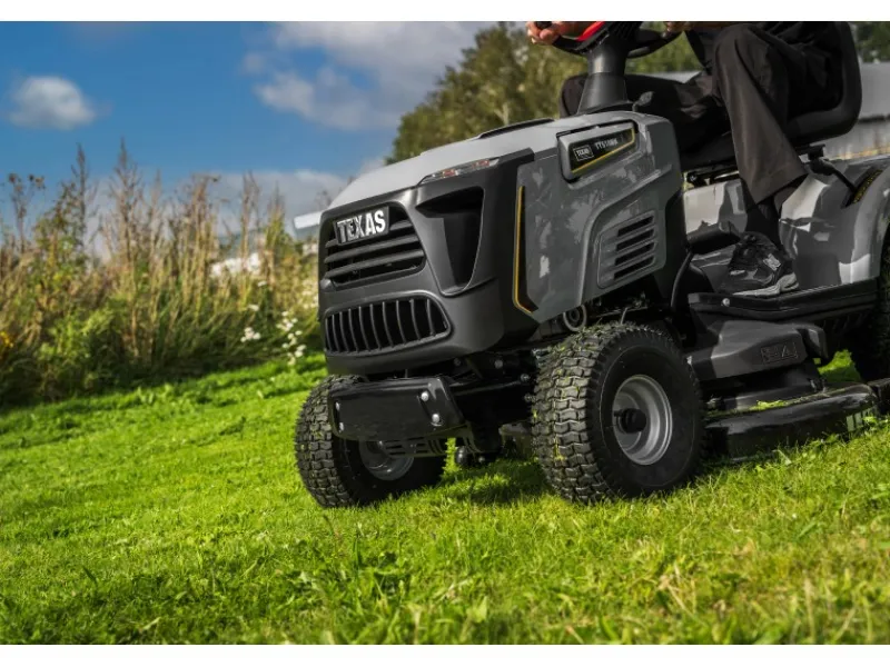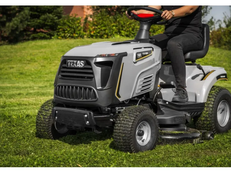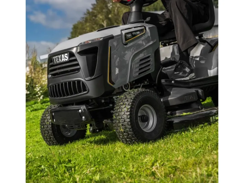 Der TTS108H verfügt über ein hydrostatisches Getriebe für eine stufenlose Geschwindigkeitsanpassung, die das Manövrieren um Hindernisse erleichtert. Praktische Details wie LED-Scheinwerfer für Arbeiten bei Dunkelheit, ein verstellbarer Sitz und Aufbewahrungsfächer machen die Bedienung komfortabel.