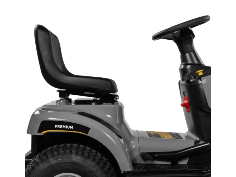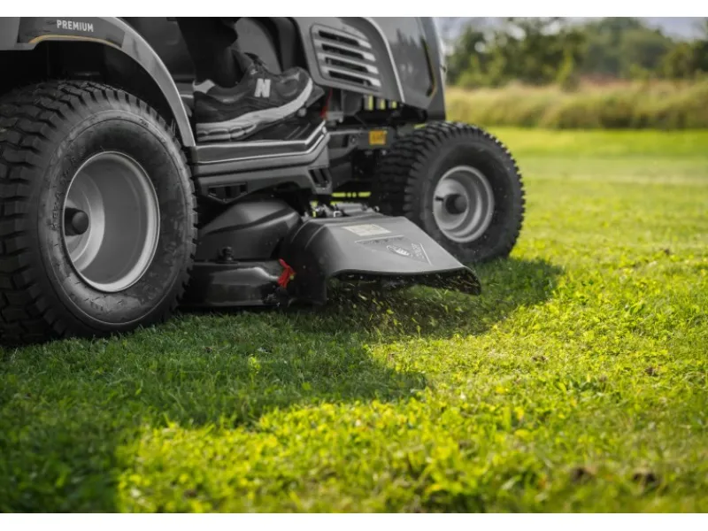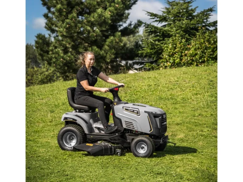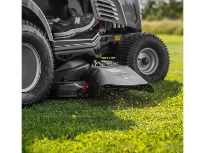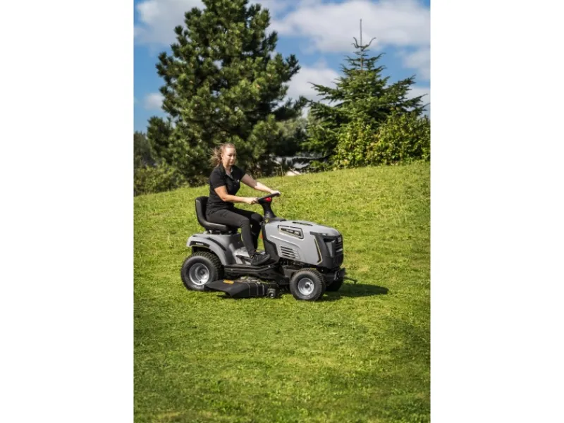 Das Mähdeck verfügt über zwei elektromagnetisch aktivierte Messer, die das Gras effizient schneiden können, und Sie haben die Möglichkeit, zwischen 7 verschiedenen Schnitthöhen zu wählen. Der Rasentraktor bietet einen Seitenauswurf sowie einen mitgelieferten Mulching Plug für Mulcharbeiten. Eine Anhängerkupplung ist ebenfalls enthalten, um weiteres Zubehör anzubringen.