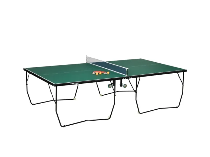 Enthält einen Tischtennistisch in Standardgröße mit einem Spielnetz, zwei Schlägern und drei Bällen.