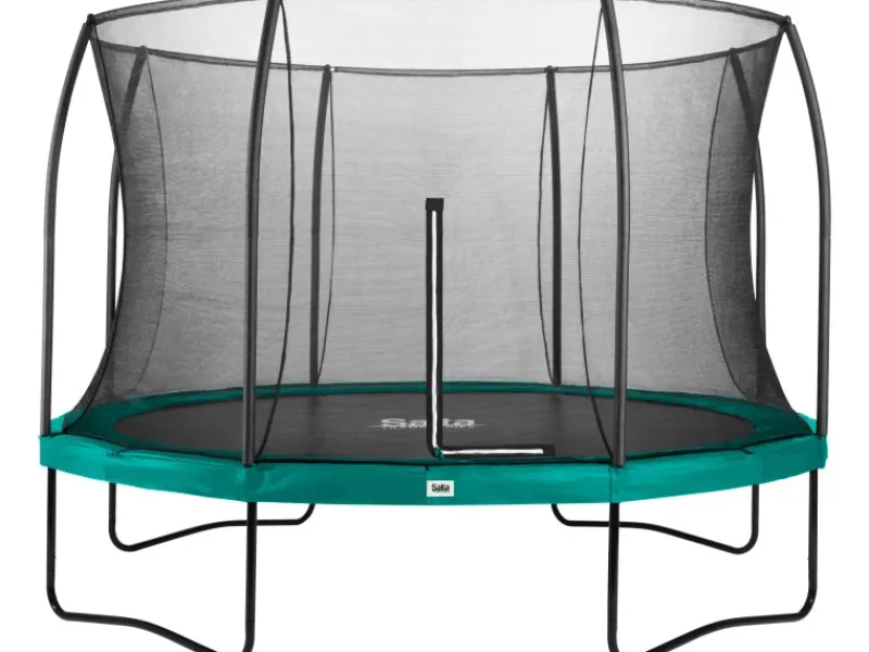 Die Konstruktion des Stahl-Topringes hält das Sicherheitsnetz in seiner eleganten Formposition und somit bleibt das weiche, feinmaschige Netz angenehm dicht. Außerdem hat das Trampolin ein 20 mm dickes und 29 cm breites Schutzpolster, so dass die doppelt verzinkten konischen Federn vollständig abgedeckt sind. Der doppelseitige Reißverschluss ermöglicht einen problemlosen Zugang zum Trampolin, sodass Sie es bequem betreten und schließen können. Das Spielgerät bietet ein einzigartiges Erlebnis beim Springen und jahrelangen Spaß.