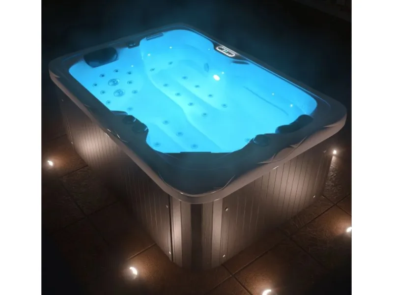 Mit einem großen LED- Strahler und 15 weiteren LEDs lassen Sie den Pool in Ihrem Garten hell erstrahlen. Der Outdoor Whirlpool LEVANZO verfügt zudem über eine 3 KW Edelstahl Heizung und über 2 kraftvolle Lautsprecher. Zusätzlich wurde ein kleiner Wasserfalleinlauf eingearbeitet, um Ihnen ein entspanntes Wasserspiel zu bieten. In Verbindung mit der, durch die LEDs erzeugten, Farblichttherapie erschafft dieses Ihnen eine wahre Wohlfühloase in Ihrem Eigenheim.