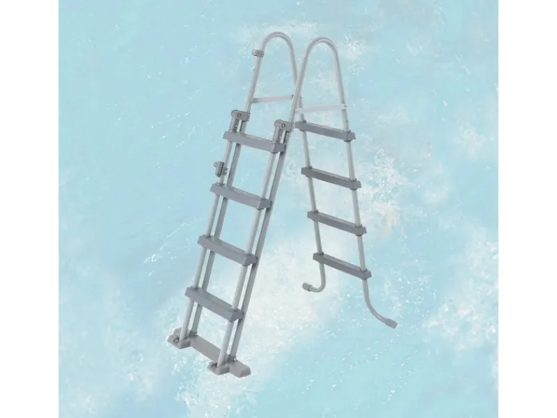 Die Weka Übersteigleiter für Aufstellbecken mit Kunststoffstufen erleichtert Ihnen den Einstieg in Ihren Swimmingpool. Sie ist für eine Pool-Beckenhöhe von 120 cm geeignet und bis zu 136 kg belastbar. Die Übersteigleiter verfügt über polyesterbeschichtete, graue Leiterholme aus Stahl sowie drei graue, klappbare Kunststoffstufen.
