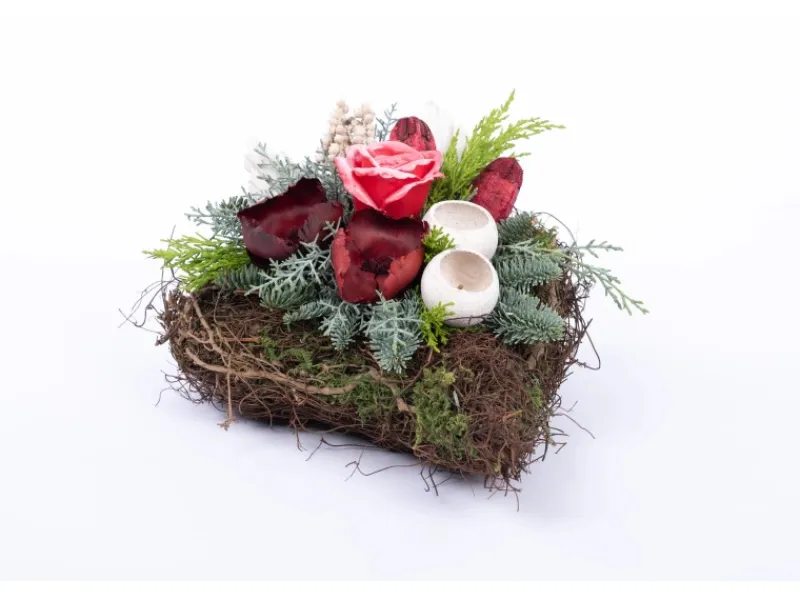 Grabgesteck mit Palmspeeren, Canella und Lotusblüten