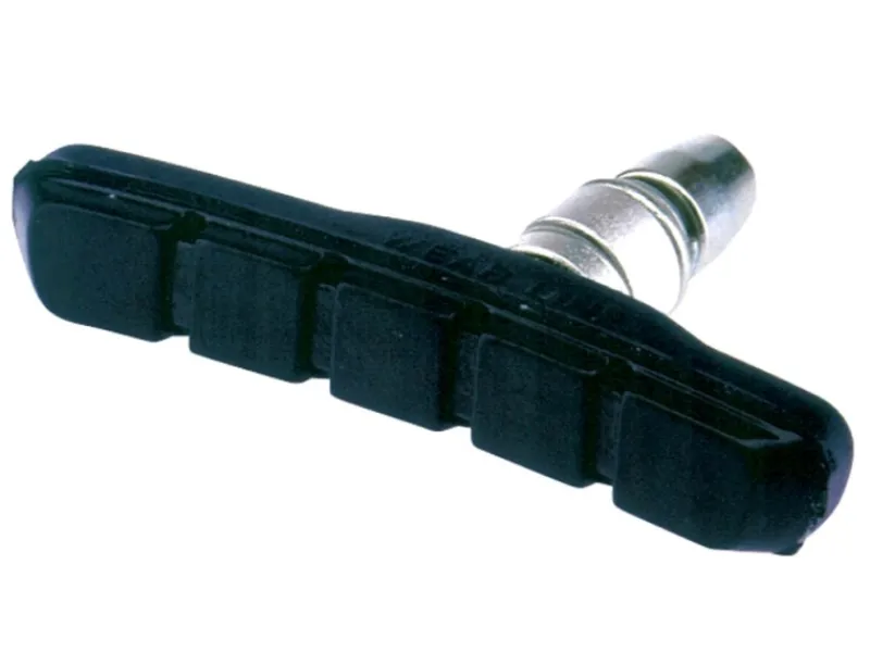2 V-Bremsschuhe für Alu-Felgen mit 6 mm Gewindebefestigung. Die Bremsschuhe sind Shimano-kompatibel.