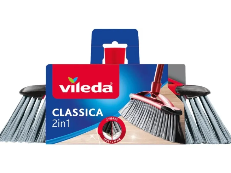 Der Vileda Zimmerbesen Superfeger 2-in-1 ist der Zimmerbesen mit innovativer 2-in-1 Beborstung. Die schwarzen Volumenborsten beseitigen den Staub und die leicht zu reinigenden grauen Aktivborsten sind für Haare. Der Vileda Zimmerbesen Superfeger 2-in-1 besitzt einen Kantenschutz, damit nichts verkratzt wird und die Ecken besser erreicht werden können.