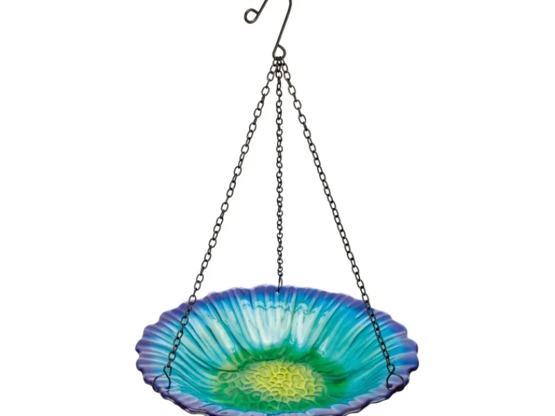 Vogeltränke in Blumenform aus robustem, grünem Glas