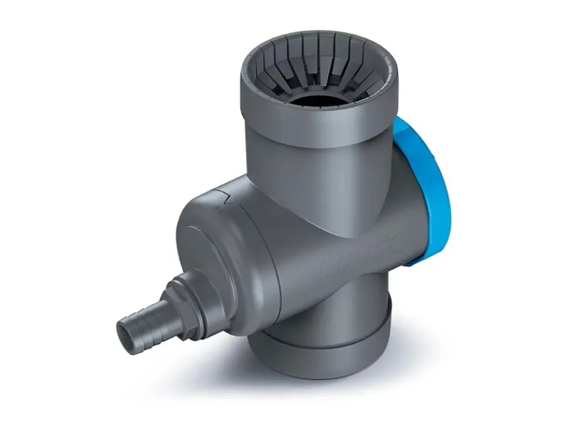 Feinfilter (Maschenweite 1 mm x 1 mm) ist im grünen Drehgriff integriert