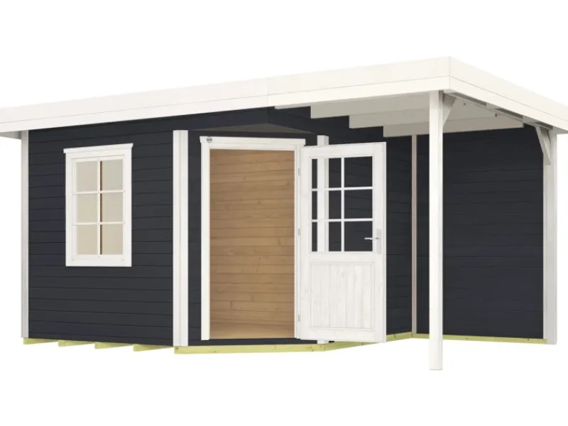Der komfortable Dachüberstand ist besonders praktisch, denn er bietet eine Vielzahl von zusätzlichen Verwendungsmöglichkeiten. Sie können den überdachten Außenbereich beispielsweise für die Lagerung von Gartenutensilien nutzen, die problemlos draußen gelagert werden können. Der Bereich kann ebenfalls als zusätzliche überdachte Sitzfläche in Ihrem Garten genutzt werden. Verbunden mit einer Gartenmöbel-Lounge könnte dies der neue Lieblingsplatz in Ihrem Garten werden.
