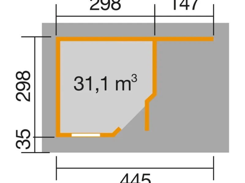 Sockelmaß Haus ohne Außenfläche B x T: 455 x 298 cm