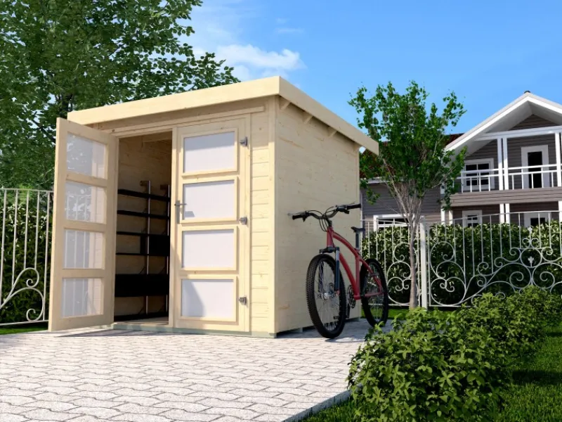 Das Holz-Gartenhaus überzeugt durch sein modernes Design und ist dabei in der Farbe Natur gehalten. Es eignet sich besonders zur Aufbewahrung von Gegenständen.