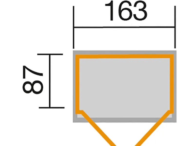 Bemaßung: Firsthöhe 216 cm, Seitenwand 174 cm (ab Oberkante Fundament)
