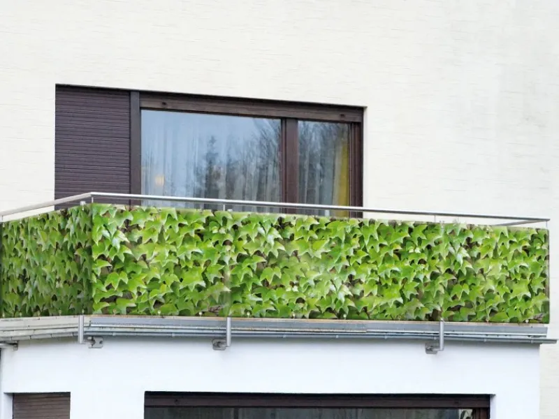 Die fünf Meter lange Folie ist witterungs- und UV-beständig und individuell zuschneidbar. Zudem sorgen 24 Metall-Ösen für sicheren Halt und ermöglichen das einfache Anbringen und die Befestigung der Sichtschutzfolie.