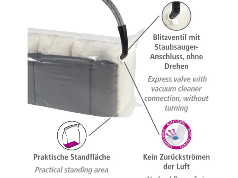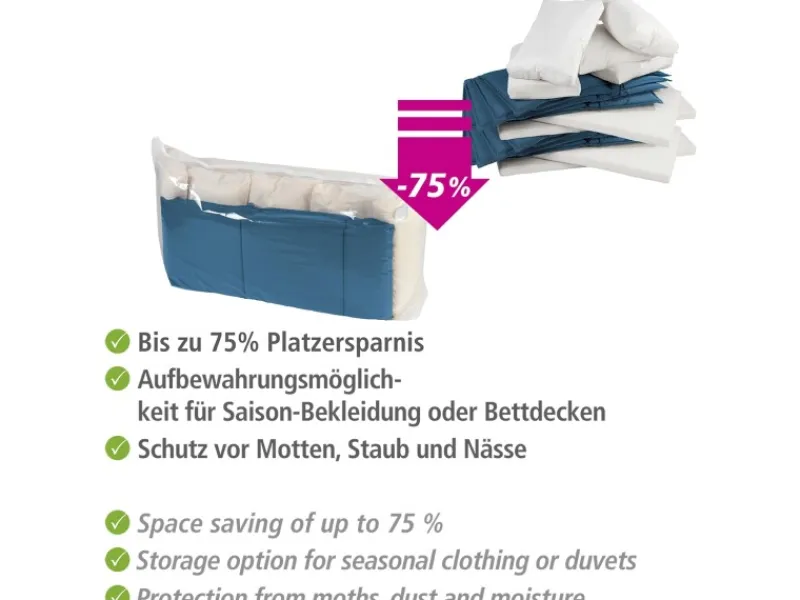 Praktisches Vakuum Aufbewahrungssystem spart bis zu 75% Platz
