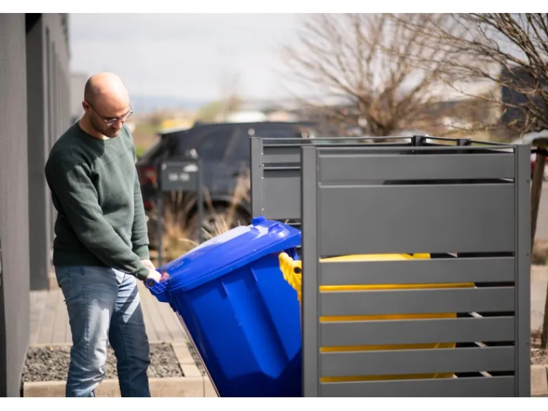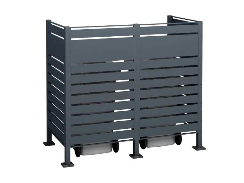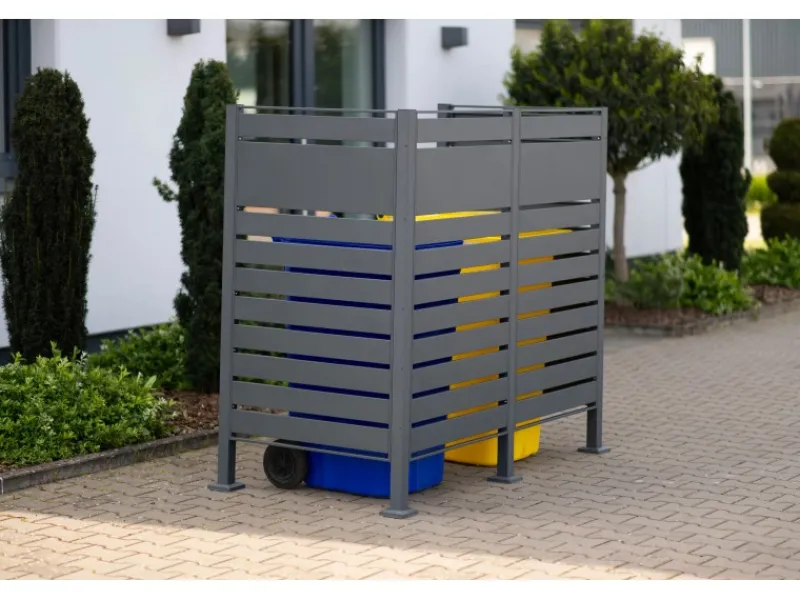 Darüber hinaus ist die Mülltonnenbox Planum ein vielseitiges 2-in-1-Multitalent. Neben der offensichtlichen Aufwertung Ihrer Mülltonne fungiert die Verkleidung, abhängig von Größe und Standort, auch als dekorativer Sichtschutz. Dank der offenen Konstruktion bleibt Ihre Mülltonne begehbar, was eine problemlose Entsorgung ermöglicht. Zusätzlich haben Sie die Möglichkeit, die Vorrichtung alternativ als Lager- oder Stellplatz für Fahrräder, Besen und mehr zu nutzen.