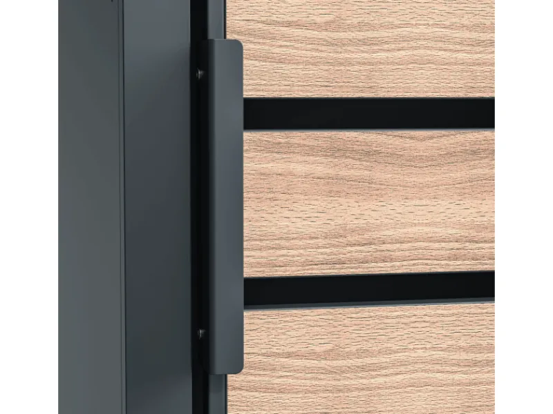– Zeitloses Design durch die Kombination von dunkelgrauem Stahl in Kombination mit Holzoptik
