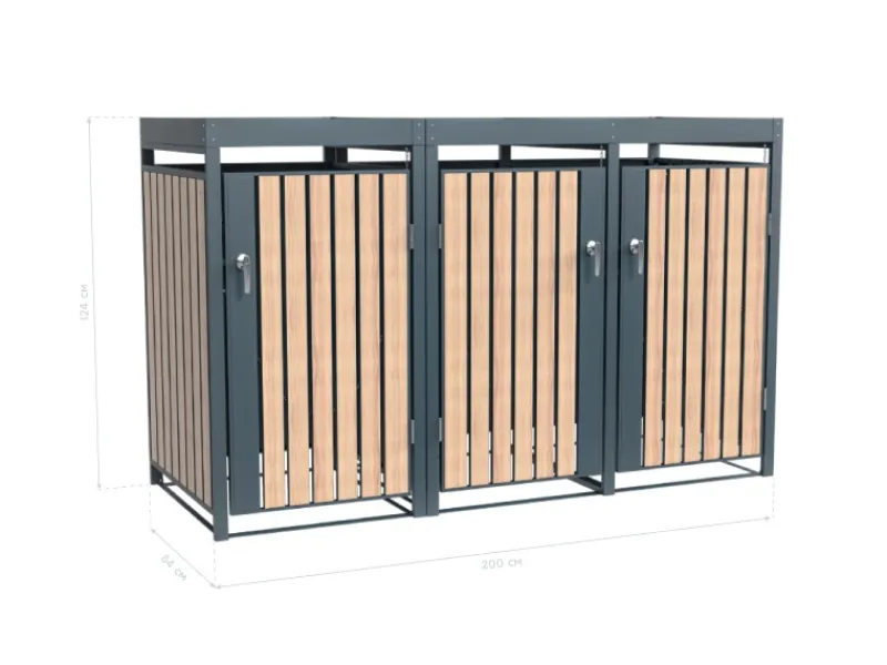 – Leichtes Handling: 3 Fronttüren ermöglichen müheloses Hineinschieben und Herausziehen der Mülltonnen