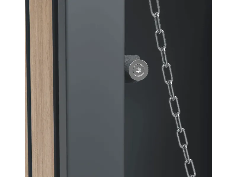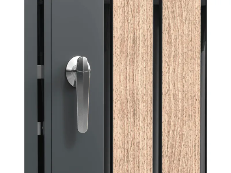 – Zeitloses Design durch die Kombination von dunkelgrauem Stahl in Kombination mit Holzoptik