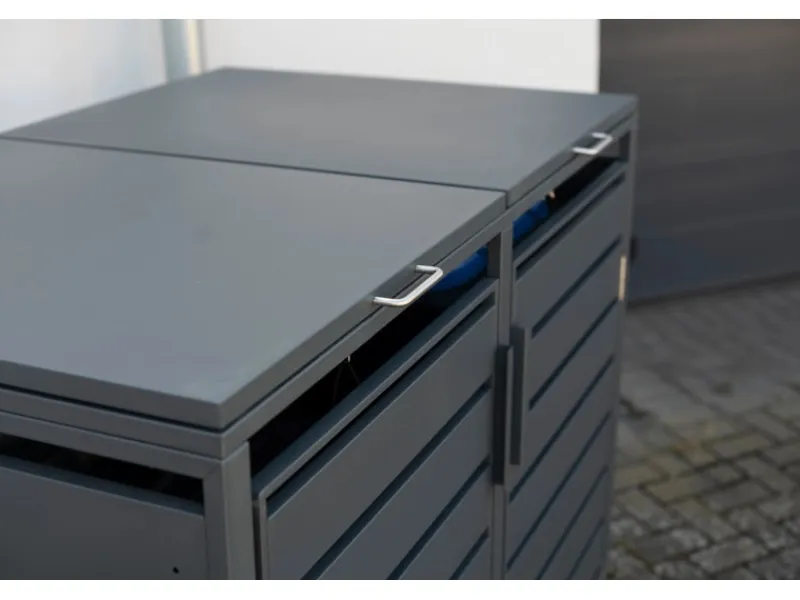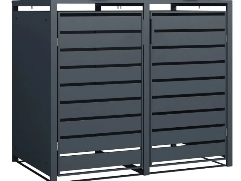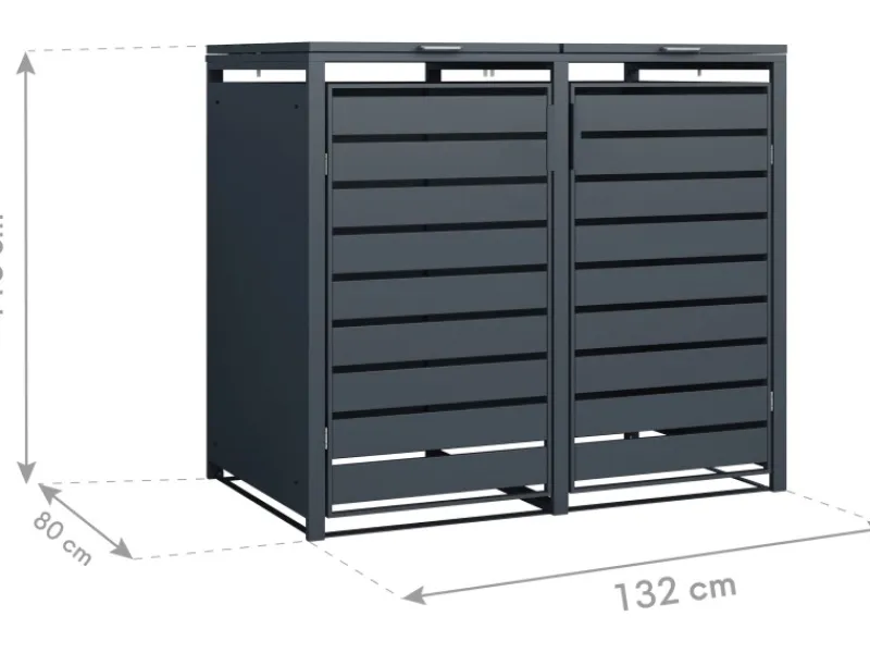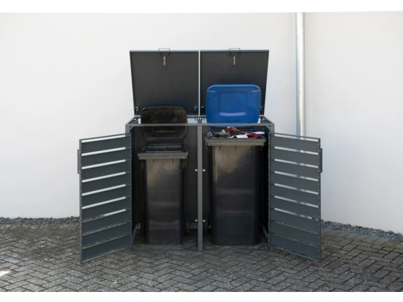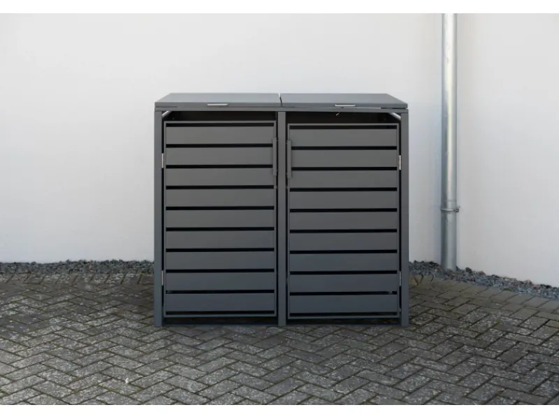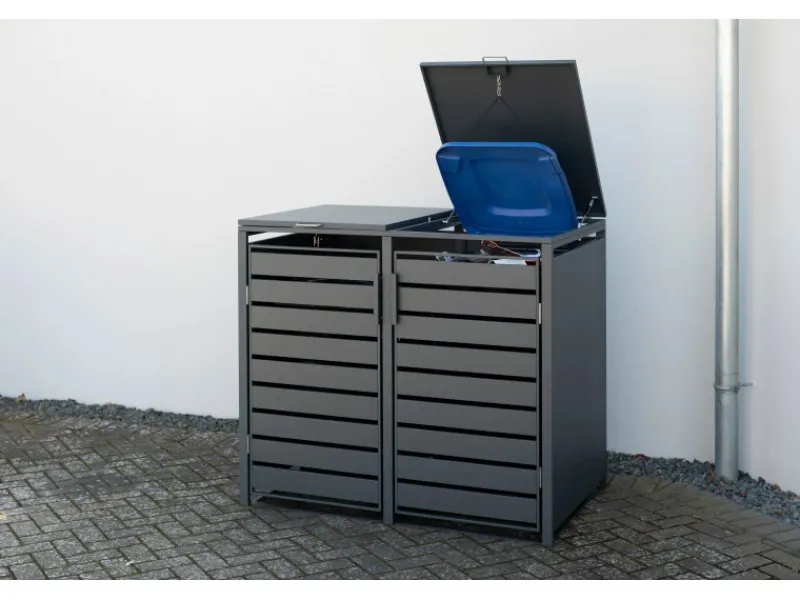 Dank der leichtgängigen Flügeltür lässt sich die Tonne mühelos in die Mülltonnenbox hineinschieben. Sie haben auch die Möglichkeit, die Mülltonnenbox von Westmann als Gartenschrank oder Gartenbox zu verwenden und damit schnell für Ordnung auf Ihrem Grundstück zu sorgen.