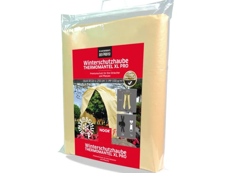 Die Winterhaube lässt sich leicht über die Pflanzen stülpen und passt sich optimal an deren Maße an. Sie verfügt über einen Reißverschluss, der es Ihnen ermöglicht, Ast- und Blattwerk bequem einzupacken, ohne es zu knicken oder zu brechen. Ein angebrachtes Zugband am unteren Ende ermöglicht es, die Haube sicher am Pflanzenstamm oder Blumentopf zu befestigen. Das Gewebe, aus dem die Haube besteht, ist robust und widerstandsfähig gegen Wind, Hagel und Regen. Es ist wasser- und lichtdurchlässig und gleichzeitig atmungsaktiv.